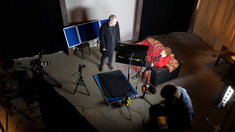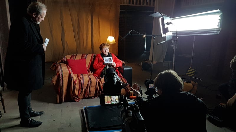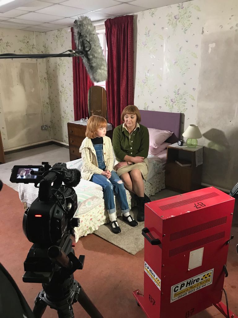 • Actors Ellie Halpin (left) and Cathy McQuaid the actors who played Joan Connelly and the young Briege Voyle – caption the photo of the two on the bed
